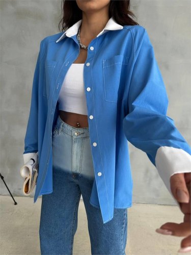 KOL VE MANŞET BEYAZ KAPALI PİLE DETAYLI GÖMLEK Mavi