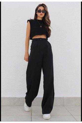• Kadın yüksek bel cepli ithal krep pantolon