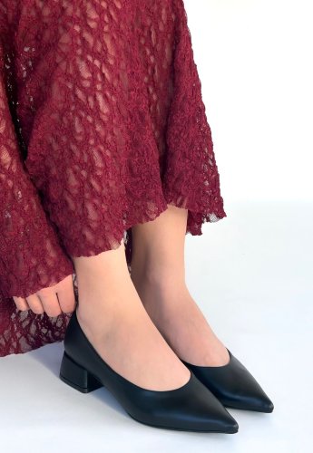 • Ferla Siyah Cilt Topuklu Ayakkabı