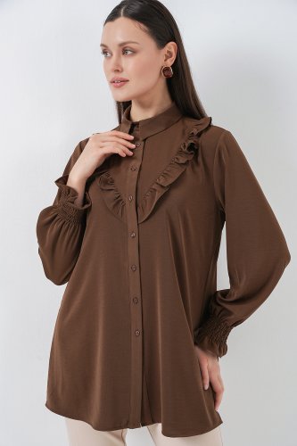 Fırfırlı Uzun Gömlek Tunik 5986 Kahverengi