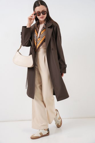 • Kruvaze Yaka Trençkot 5987 Kahverengi