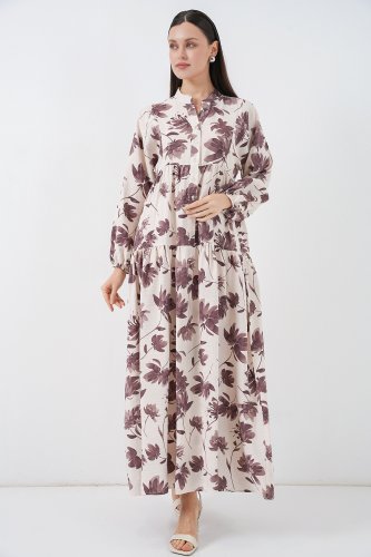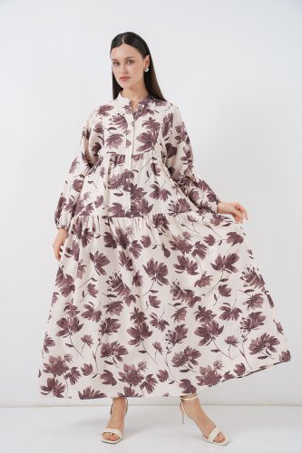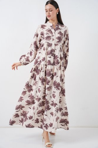 Lilyum Kumaş Uzun Tesettür Elbise 2593 Kahverengi