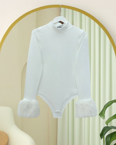Kolu Kürklü Yarım Boğazlı Çıtçıtlı Zıbın Bluz Beyaz