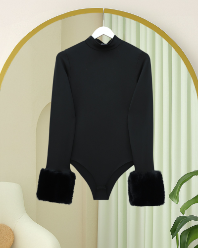 Kolu Kürklü Yarım Boğazlı Çıtçıtlı Zıbın Bluz Siyah