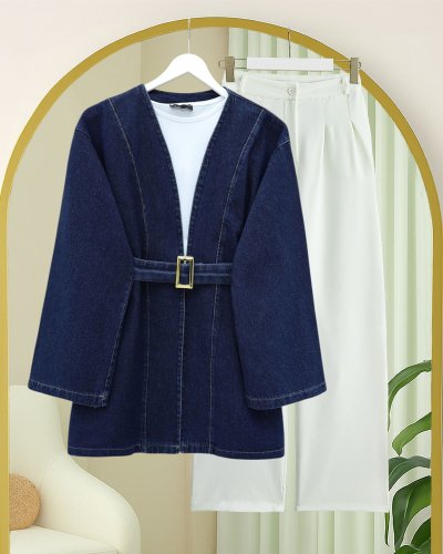 Beli Kemerli Kot Kimono Laci