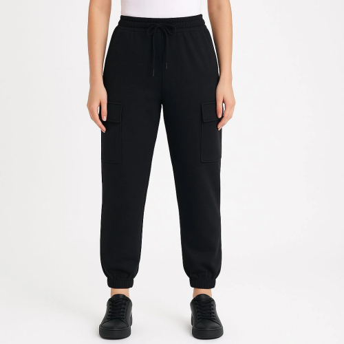 • Siyah Jogger Eşofman Altı Rahat Kalıp Kargo Cepli Lastikli Paça Günlük Spor Pantolon Siyah