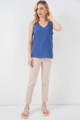 • V Yaka Sıfır Kol Bluz 950 İndigo